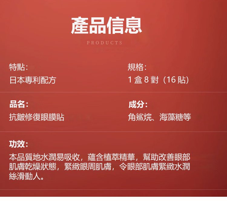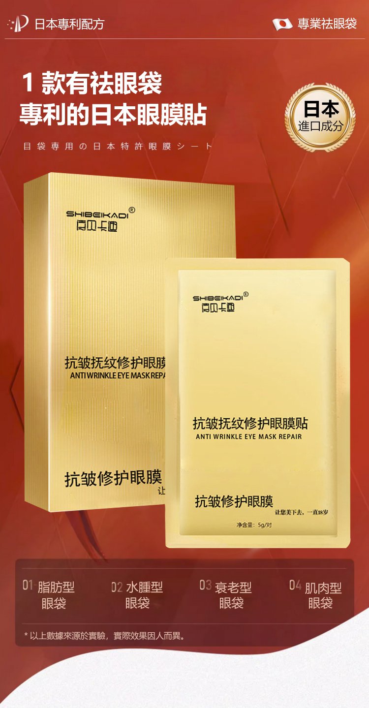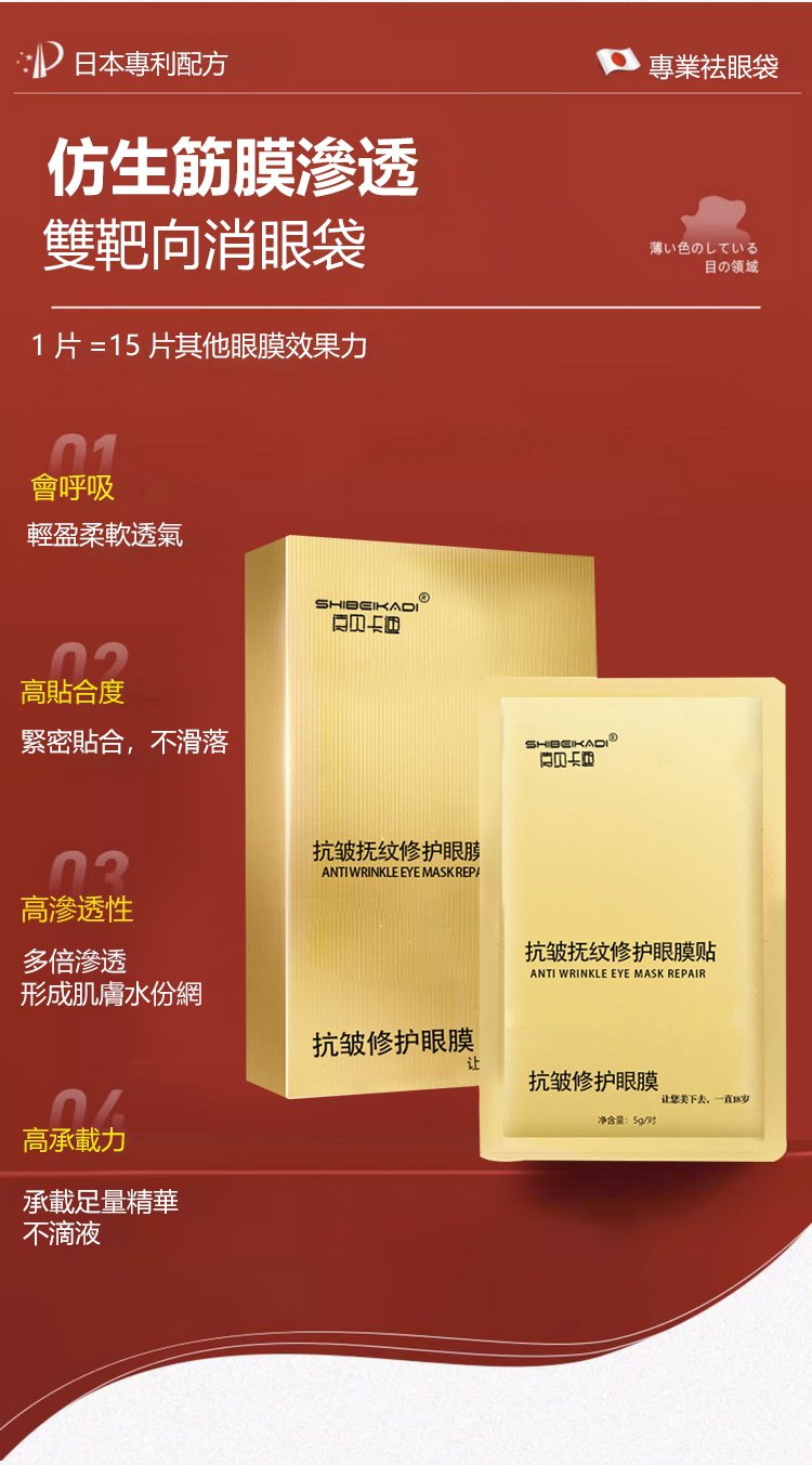 5分鐘前每晚貼一貼,輕鬆淡化眼紋、眼袋,多買多送,僅限今天!免費包郵,不滿意直接退!快下單試試吧,用了你不會後悔! - 【官網限定】1入組NT$990(8對16貼體驗裝)