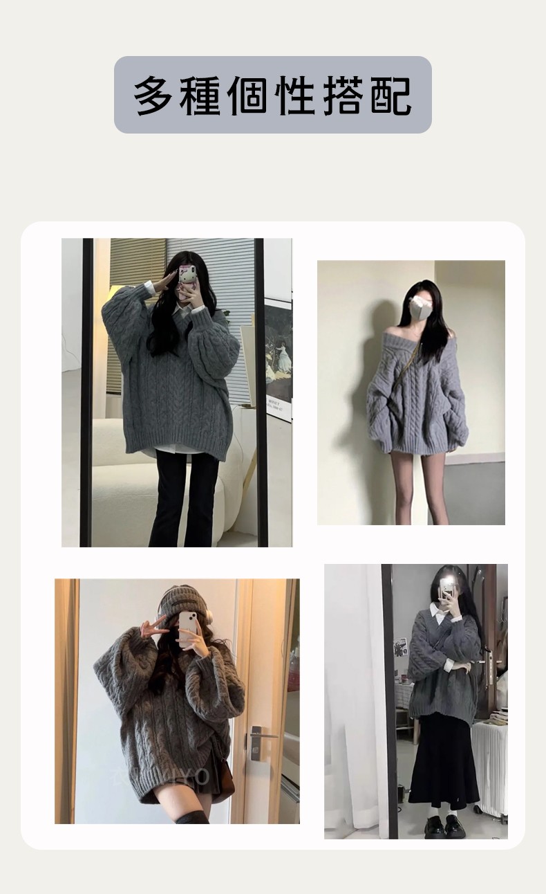 5分鐘前冬季爆款//台灣發貨+熱賣針織上衣 韓版法式V領麻花毛衣//加厚寬鬆慵懶風軟糯針織衫秋冬上衣 寬鬆上衣 毛毛外套 - 一件體驗裝NT$899