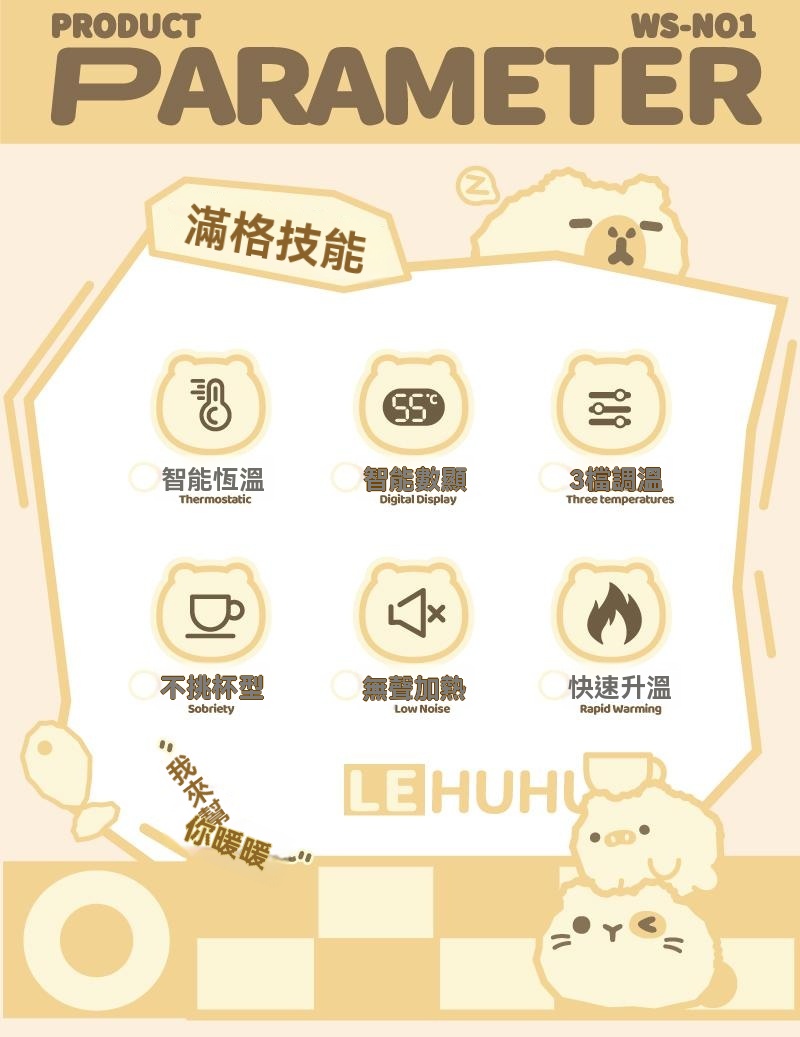 2分鐘前可愛智能恆溫usb加熱杯墊三擋可調溫 辦公室家用自動保溫暖杯 - 新品嘗鮮!1入組-NT$998