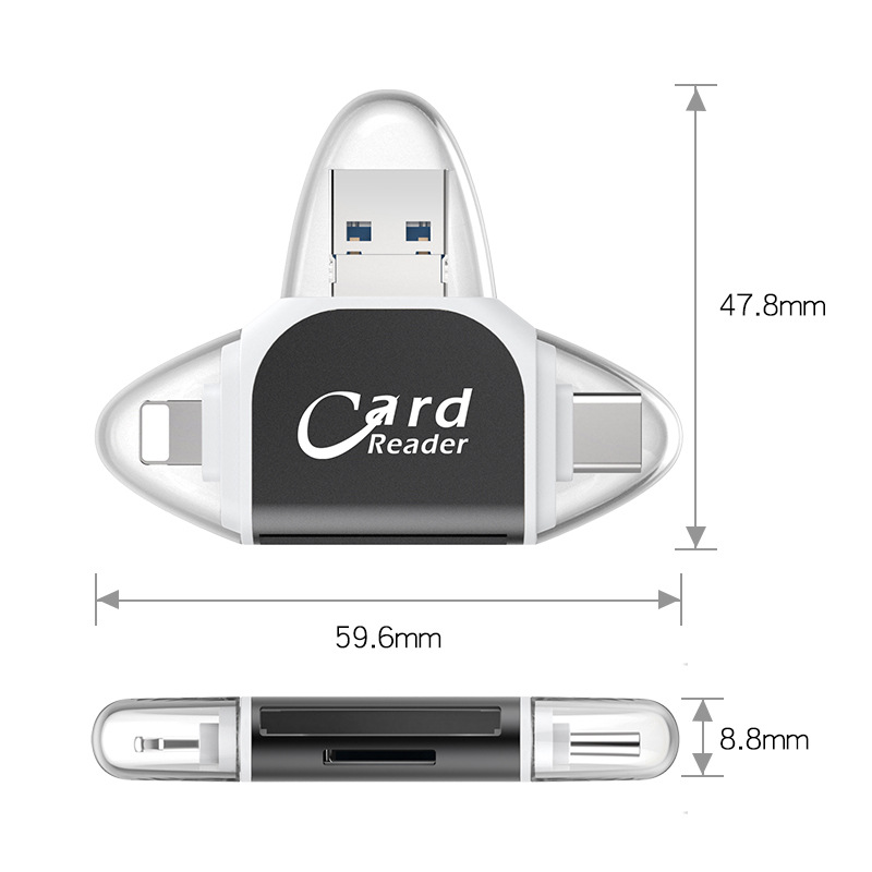 5分鐘前多功能讀卡器適用於蘋果安卓手機 - 【優惠價】四合一多功能讀卡機 一入組 NT$788
